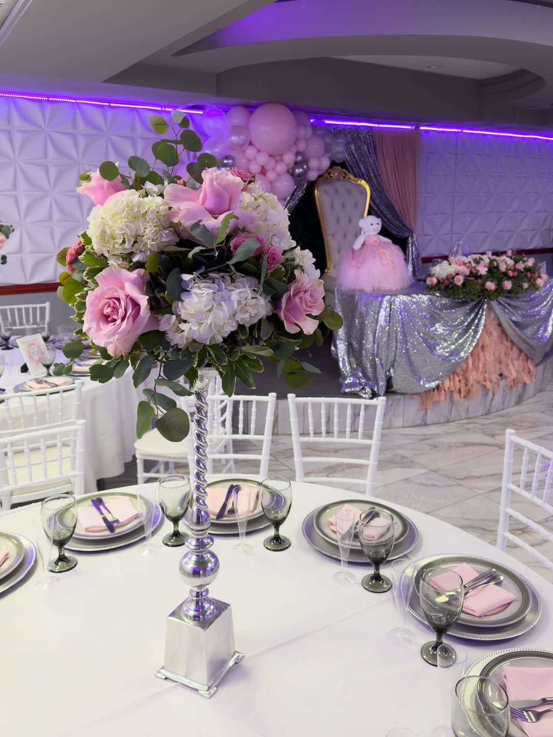 Furniture: Full setup of round tables and high-quality Tiffany chairs for all your guests.